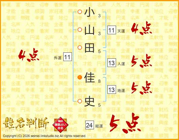 小山田佳史さんの総運は24画の5点!