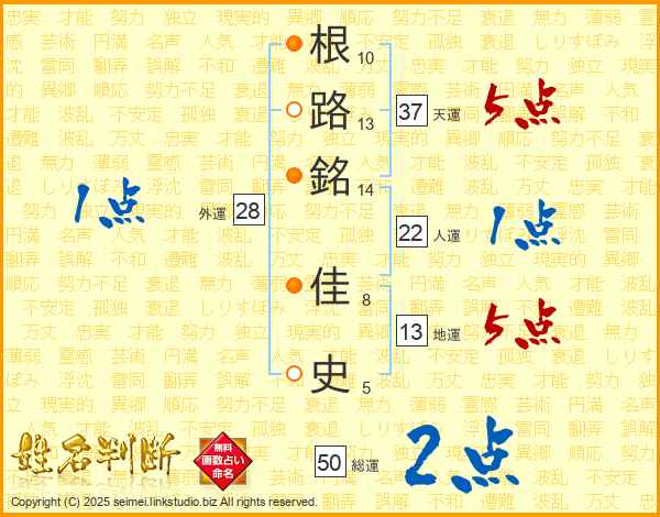 根路銘佳史さんの天運は37画の5点!