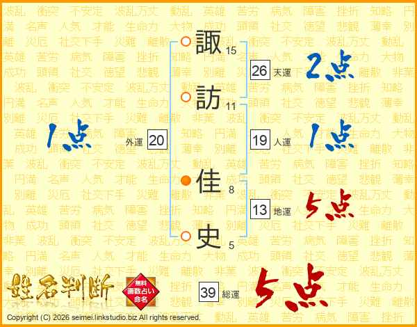 諏訪佳史さんの総運は39画の5点!