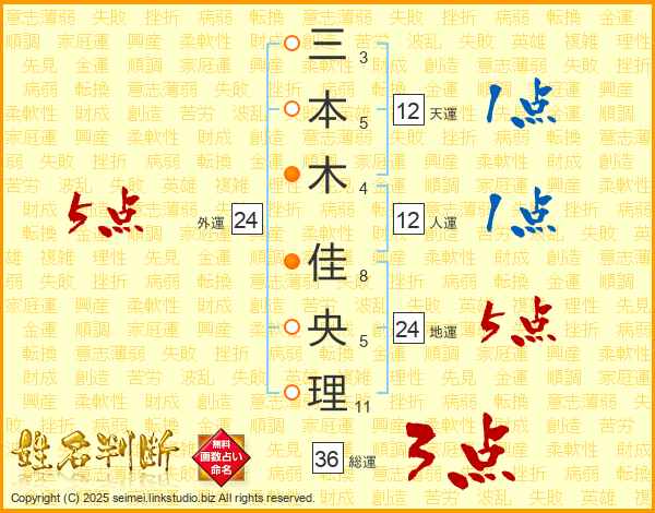 三本木佳央理さんの外運は24画の5点!