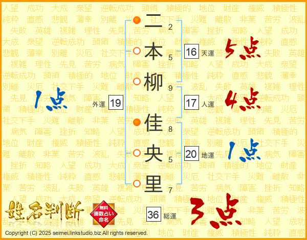 二本柳佳央里さんの総運は36画の3点!