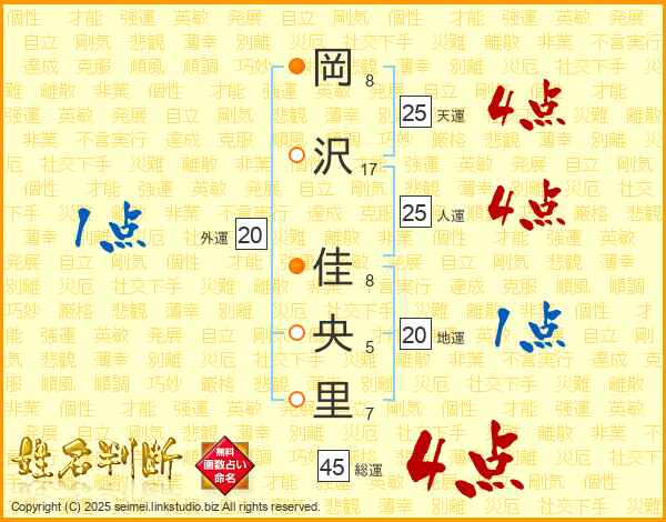 岡沢佳央里さんの人運は25画の4点!