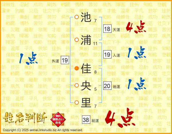 池浦佳央里さんの総運は38画の4点!