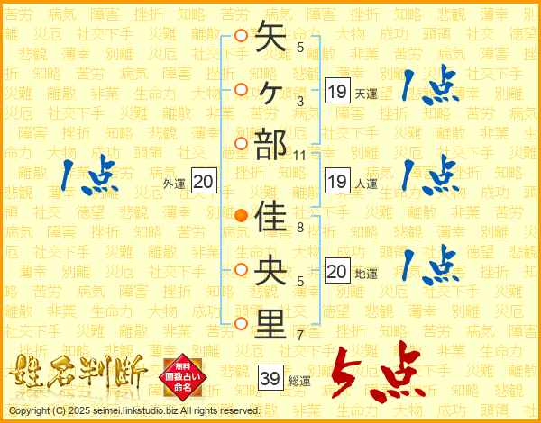 矢ヶ部佳央里さんの総運は39画の5点!