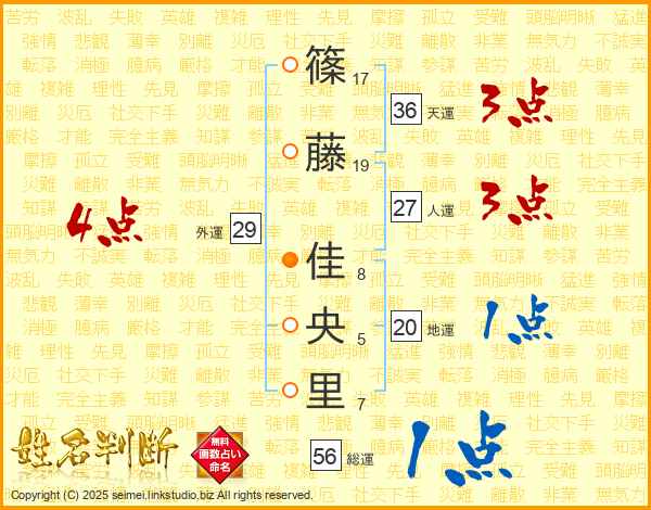 篠(17画)藤(19画) 佳(8画)央(5画)里(7画)
