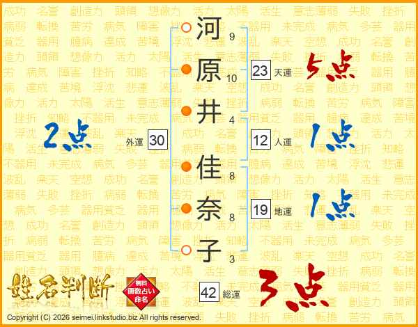 河(9画)原(10画)井(4画) 佳(8画)奈(8画)子(3画)