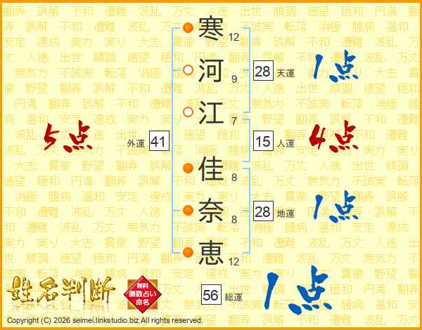 寒河江佳奈恵さんの外運は41画の5点!
