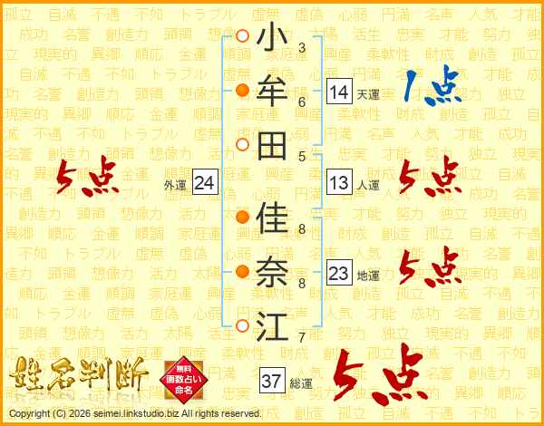 小牟田佳奈江さんの総運は37画の5点!