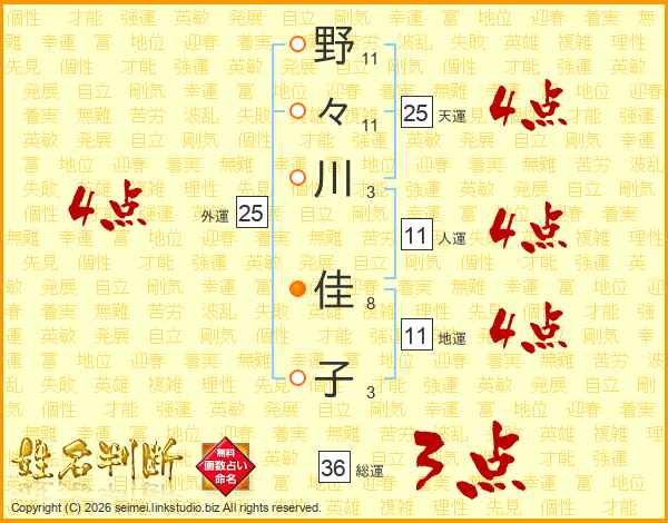 野々川佳子さんの総運は36画の3点!