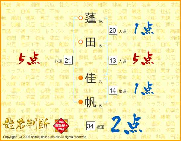 蓬田佳帆さんの総運は34画の2点!
