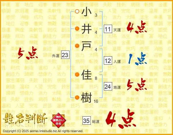 小井戸佳樹さんの総運は35画の4点!