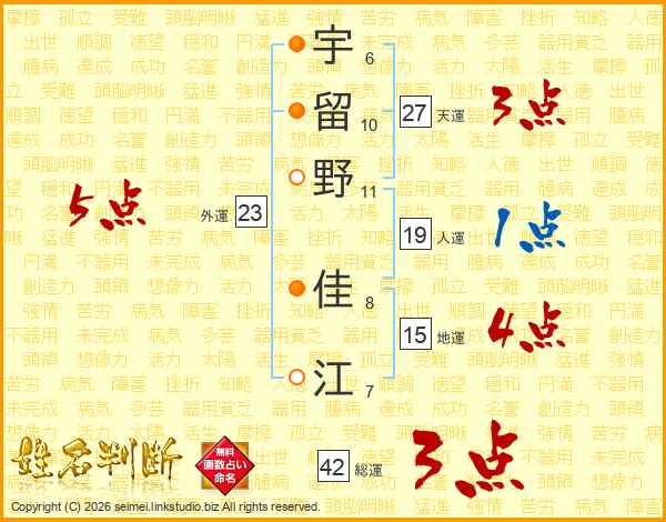 宇留野佳江さんの天運は27画の3点!