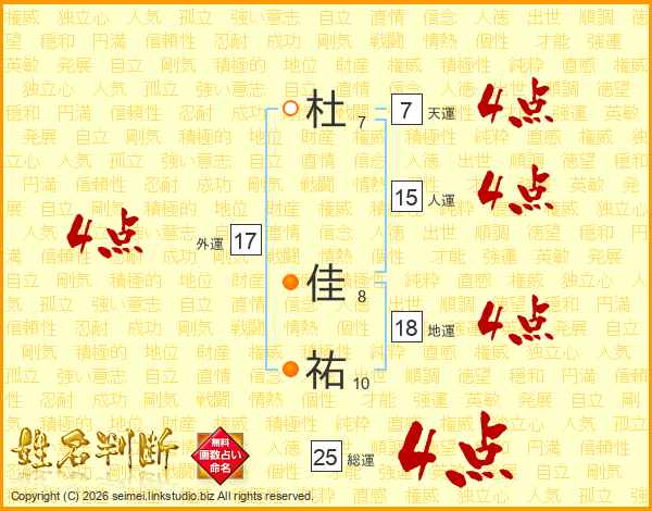 杜佳祐さんの総運は25画の4点!