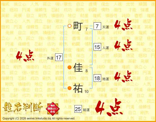 町佳祐さんの総運は25画の4点!