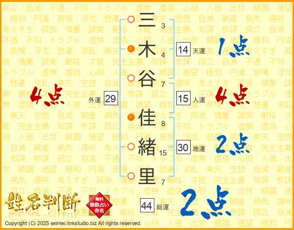 三木谷佳緒里さんの外運は29画の4点!