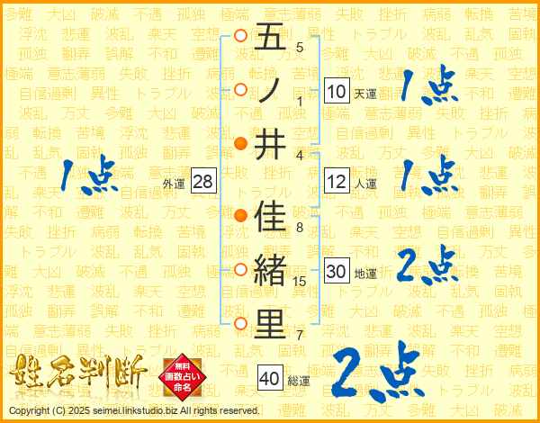 五ノ井佳緒里さんの総運は40画の2点!