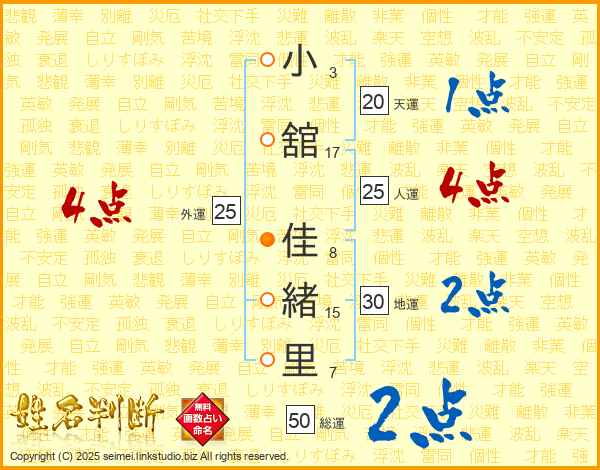 小舘佳緒里さんの総運は50画の2点!