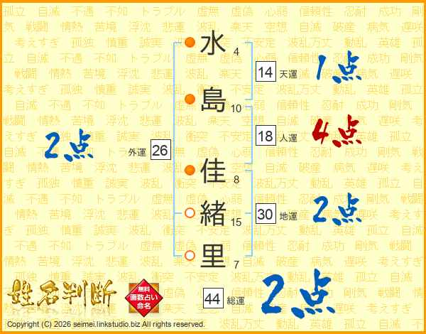 水島佳緒里さんの総運は44画の2点!