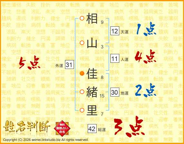 相山佳緒里さんの外運は31画の5点!