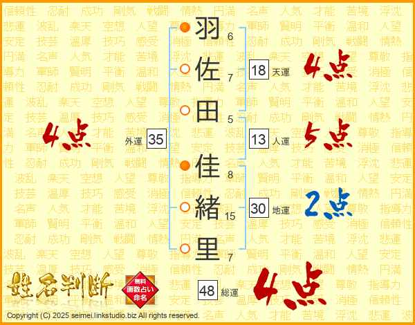 羽佐田佳緒里さんの外運は35画の4点!