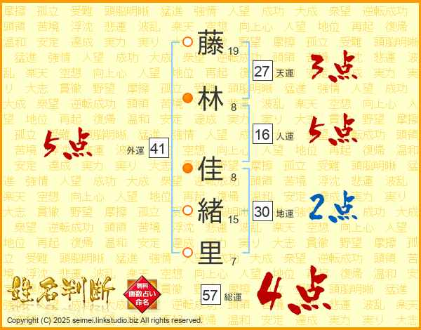藤林佳緒里さんの外運は41画の5点!