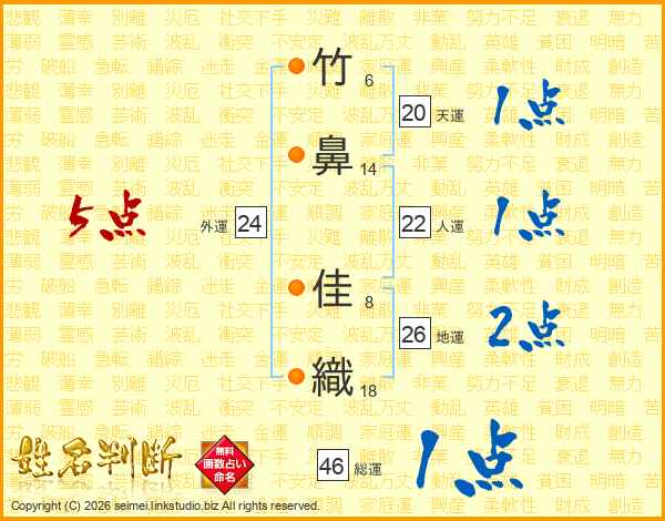 竹鼻佳織さんの総運は46画の1点!