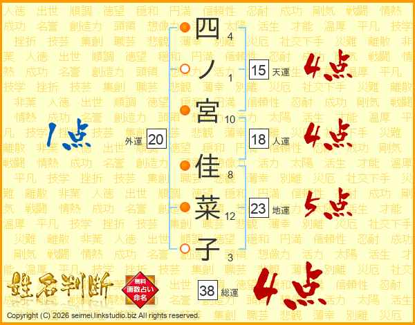 四ノ宮佳菜子さんの総運は38画の4点!