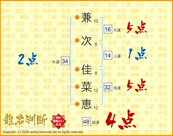 兼次佳菜恵さんの総運は48画の4点!