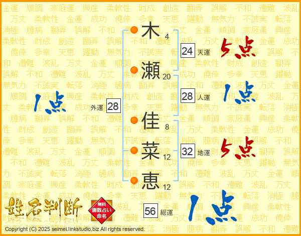 木瀬佳菜恵さんの総運は56画の1点!