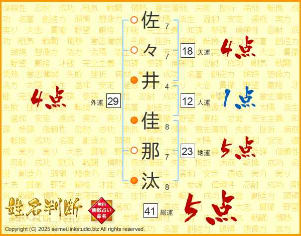 佐々井佳那汰さんの総運は41画の5点!