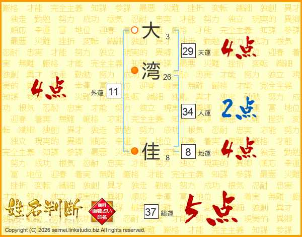 大湾佳さんの人運は34画の2点!