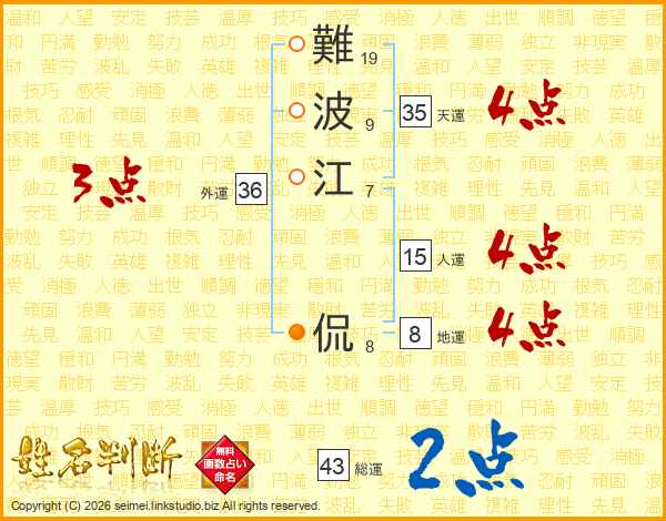 難波江侃さんの総運は43画の2点!