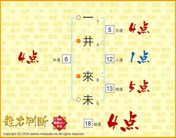 一井來未さんの総運は18画の4点!