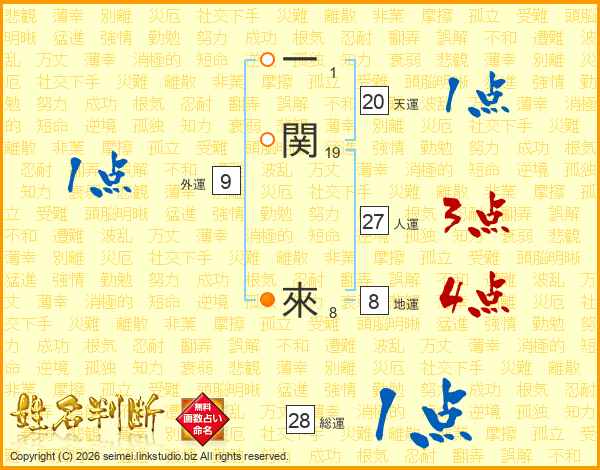 一関來さんの人運は27画の3点!