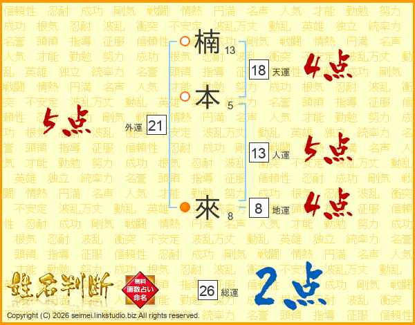 楠本來さんの総運は26画の2点!