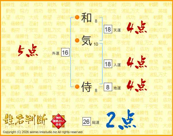 和気侍さんの総運は26画の2点!
