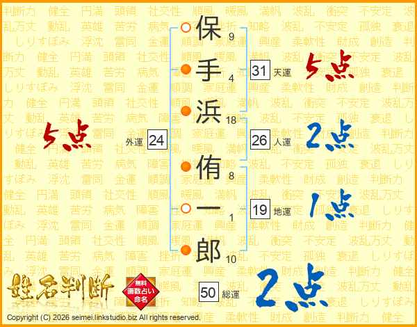 保手浜侑一郎さんの天運は31画の5点!