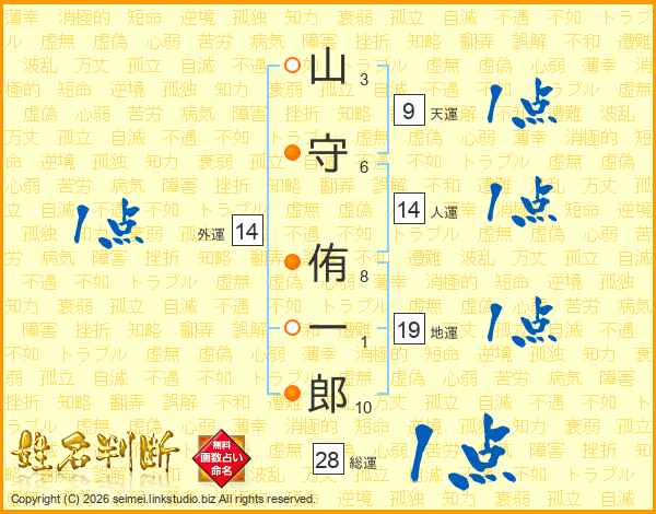 山(3画)守(6画) 侑(8画)一(1画)郎(10画)