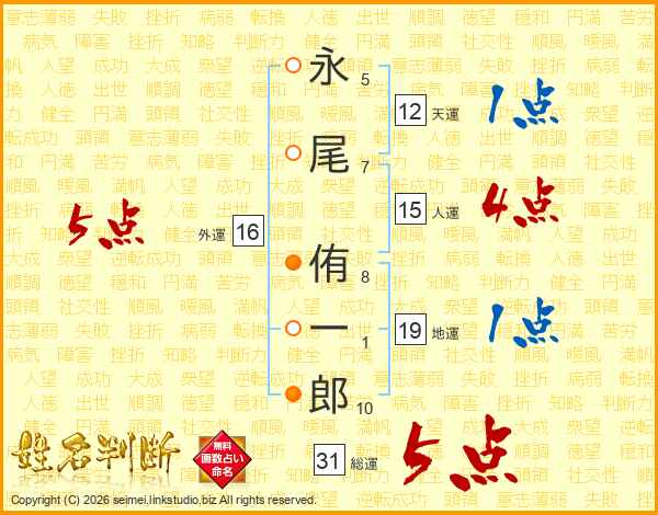 永尾侑一郎さんの総運は31画の5点!