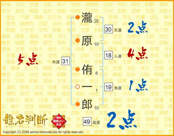 瀧原侑一郎さんの天運は30画の2点!