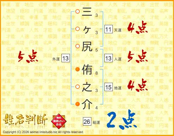 三ヶ尻侑之介さんの総運は26画の2点!