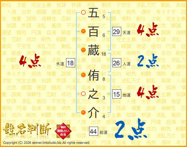 五(5画)百(6画)蔵(18画) 侑(8画)之(3画)介(4画)