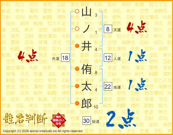 山ノ井侑太郎さんの総運は30画の2点!