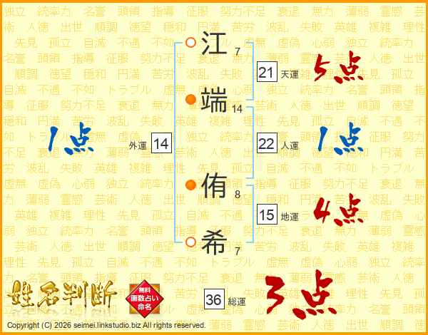 江端侑希さんの外運は14画の1点!