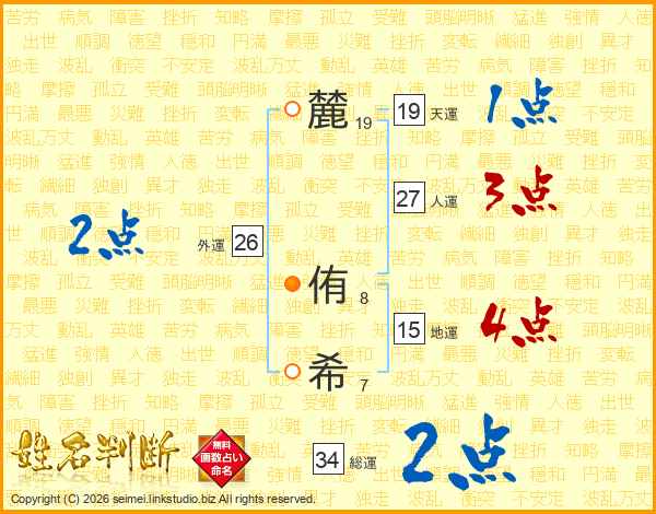 麓(19画) 侑(8画)希(7画)