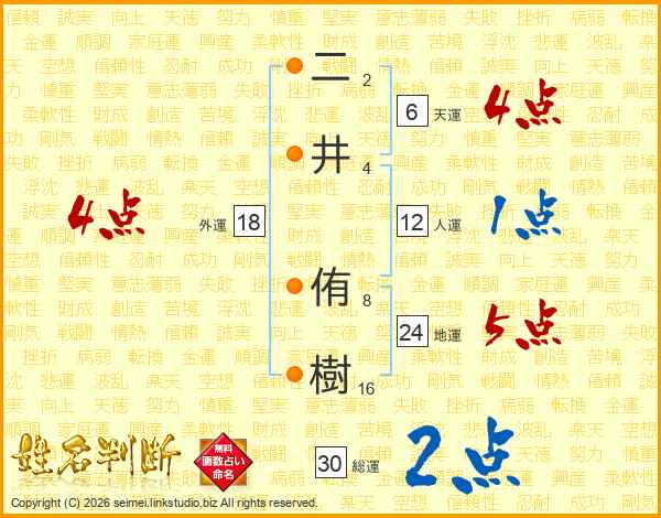 二井侑樹さんの総運は30画の2点!