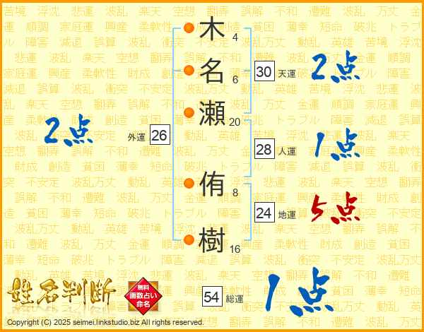 木名瀬侑樹さんの総運は54画の1点!