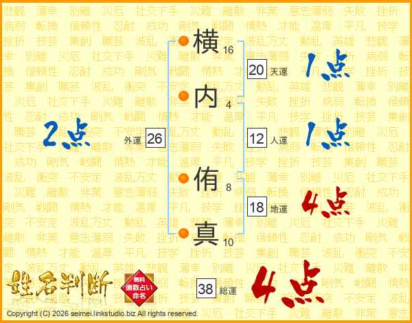 横内侑真さんの総運は38画の4点!
