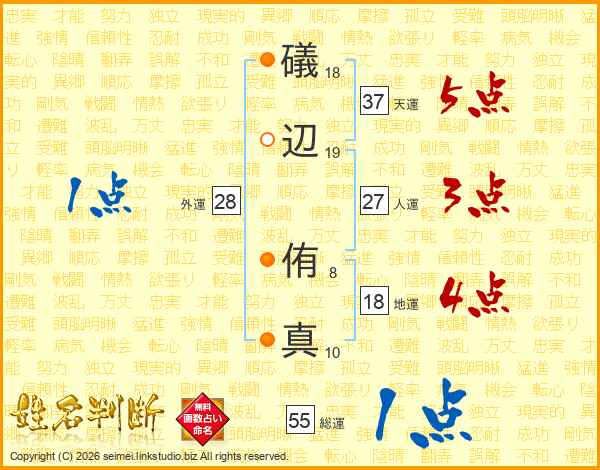 礒(18画)辺(19画) 侑(8画)真(10画)