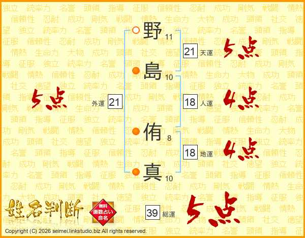 野島侑真さんの総運は39画の5点!